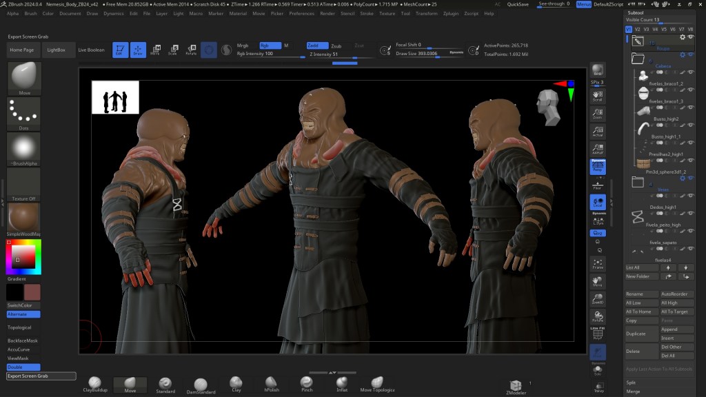 Nemesis is a character I’ve always liked. I find him very original and unique. He represents Resident Evil perfectly, so I decided to use him as a way to learn character modeling. The project is extensive, but I enjoy it and I’m learning a lot along the way.